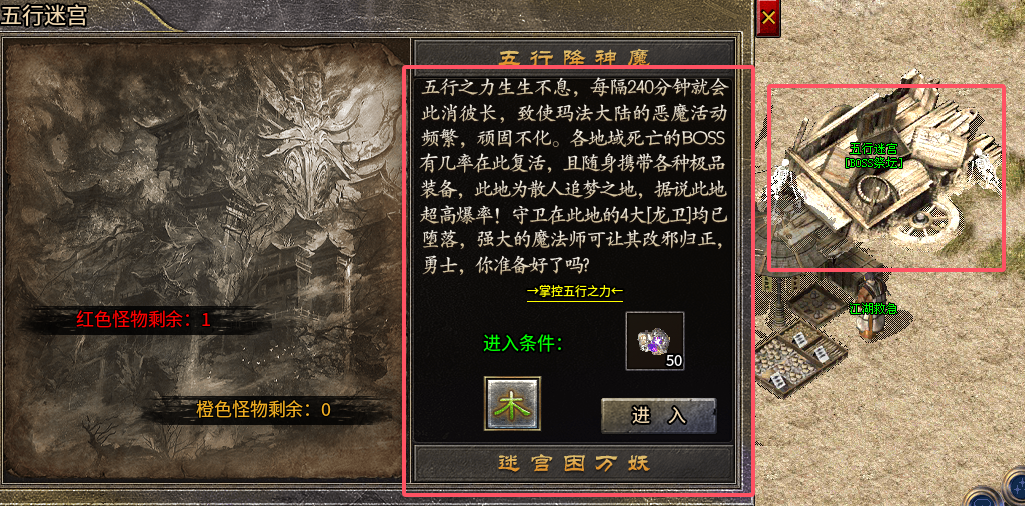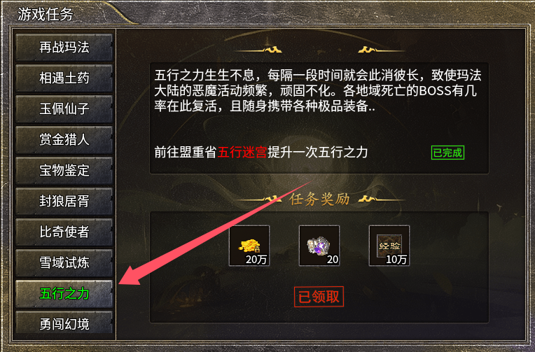 五行之力前期有能力的是必须要做的,进入条件50 个紫水晶、对应地图要求列入 NPC 显示需要金进入要切换金才能进入,