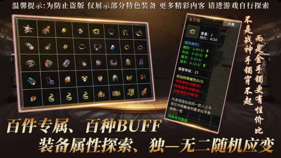 6.选择最适合自己的才是最强悍的,每件特殊装备属性都是随机的,运气