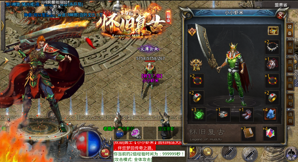道士狗、法师盾、战士烈火、原汁原味怀旧复古三职业重现经典!爆率全开!福利拉满!