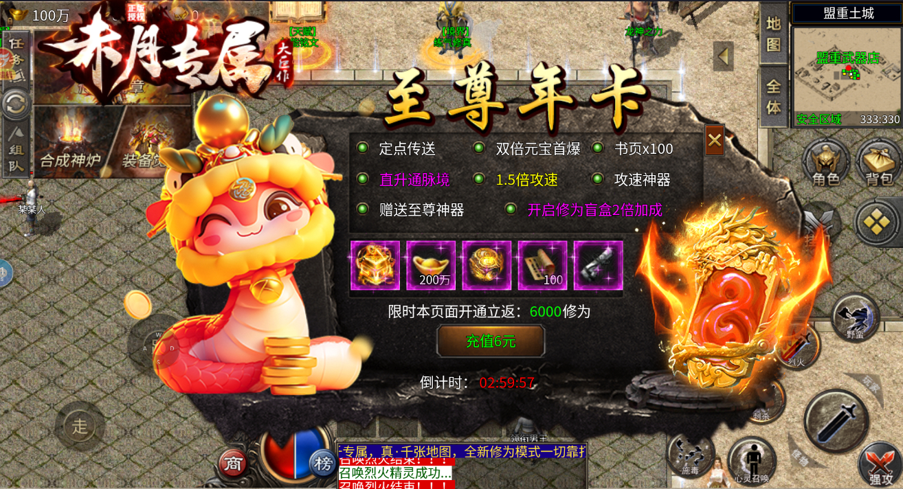 3、六元至尊年卡全网极致性价比 送至尊神器贯穿全游戏 极致属性 战力狂飙
