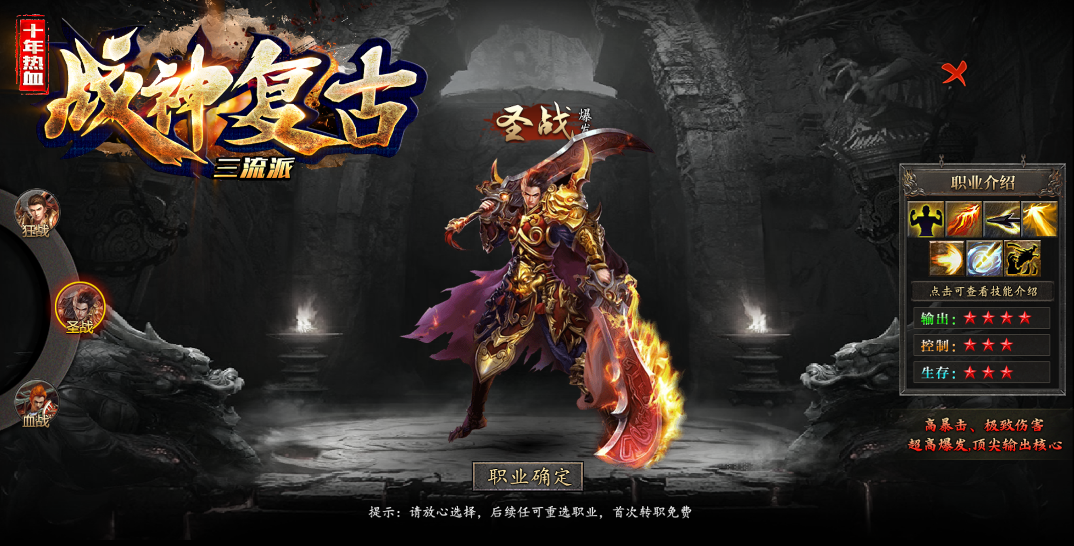 职业介绍:高暴击属性,极致伤害,超高爆发,顶尖输出核心