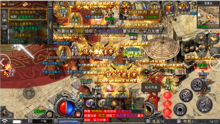 累计充值达到7万:神龙精髓*500、荣誉之魂*100、属性丹(无限制)*500