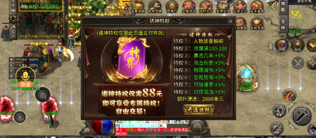 土城右手边小安全区有两个跨服地图,是需要开启了88诸神特权才能进的,一个是合区后每天中午,一个是开区10天后每天晚上,这里我进去看了下,需要组队,不然就是别的区的人欺负。