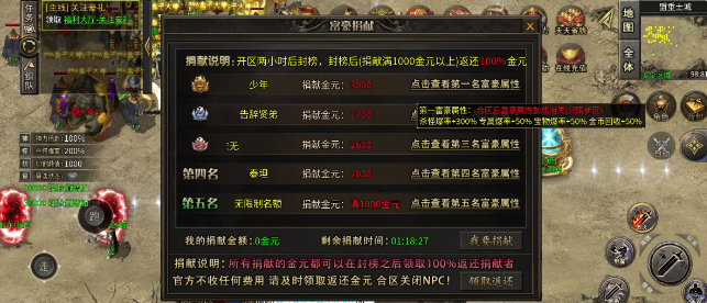 这个是新区2小时才有的,他介绍是2小时后100%退还,里面的属性+爆率和金币回收。反正我进服没注意这个玩意,也是没弄。。。。