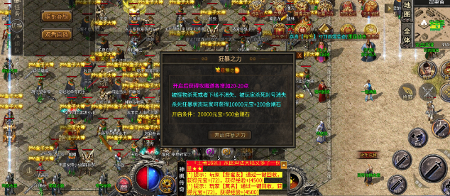 1档狂暴之力2w元宝+500金刚钻2档狂暴600灵符开启杀戮之力。