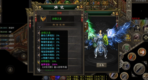 在视觉效果上,手机版传奇单职业游戏同样表现出色。游戏采用了精美的画面和逼真的音效,为玩家营造了一个身临其境的游戏世界。无论是华丽的装备外观,还是逼真的战斗场景,都让玩家仿佛置身于传奇的热血战场之中。
