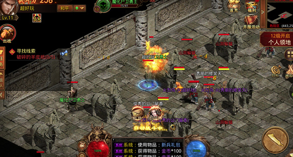 - 特色:拥有大量玩家,提供丰富的社交互动和PK竞技体验。被称为搬砖者的神奇工具,玩家无需担心装备、材料和元宝的出售问题。