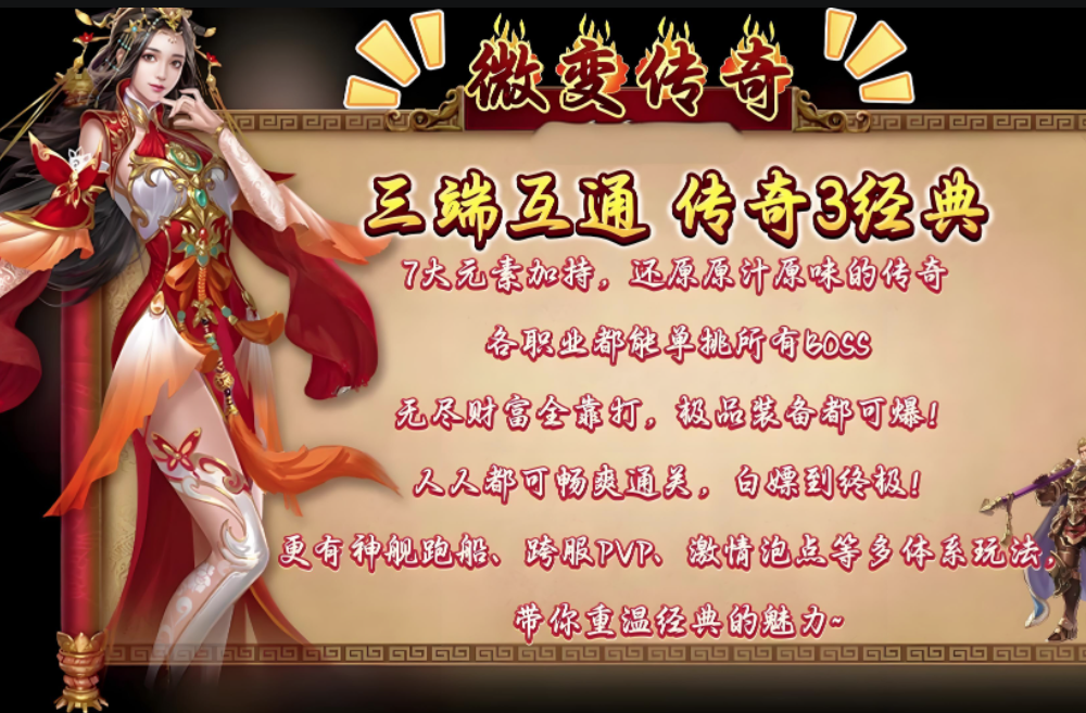 - 特点:复刻了经典1.45版本《传奇3》,完美再现了多种玩法,包括7元素、神舰跑船等。保留了复古的经典元素,同时加入了元素升级系统,让游戏体验更加丰富和刺激。
