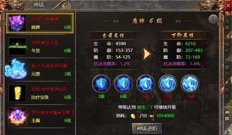 为了提升这些道具的等级,我们需要收集觉醒之石、圣龙之魂和元宝等材料。